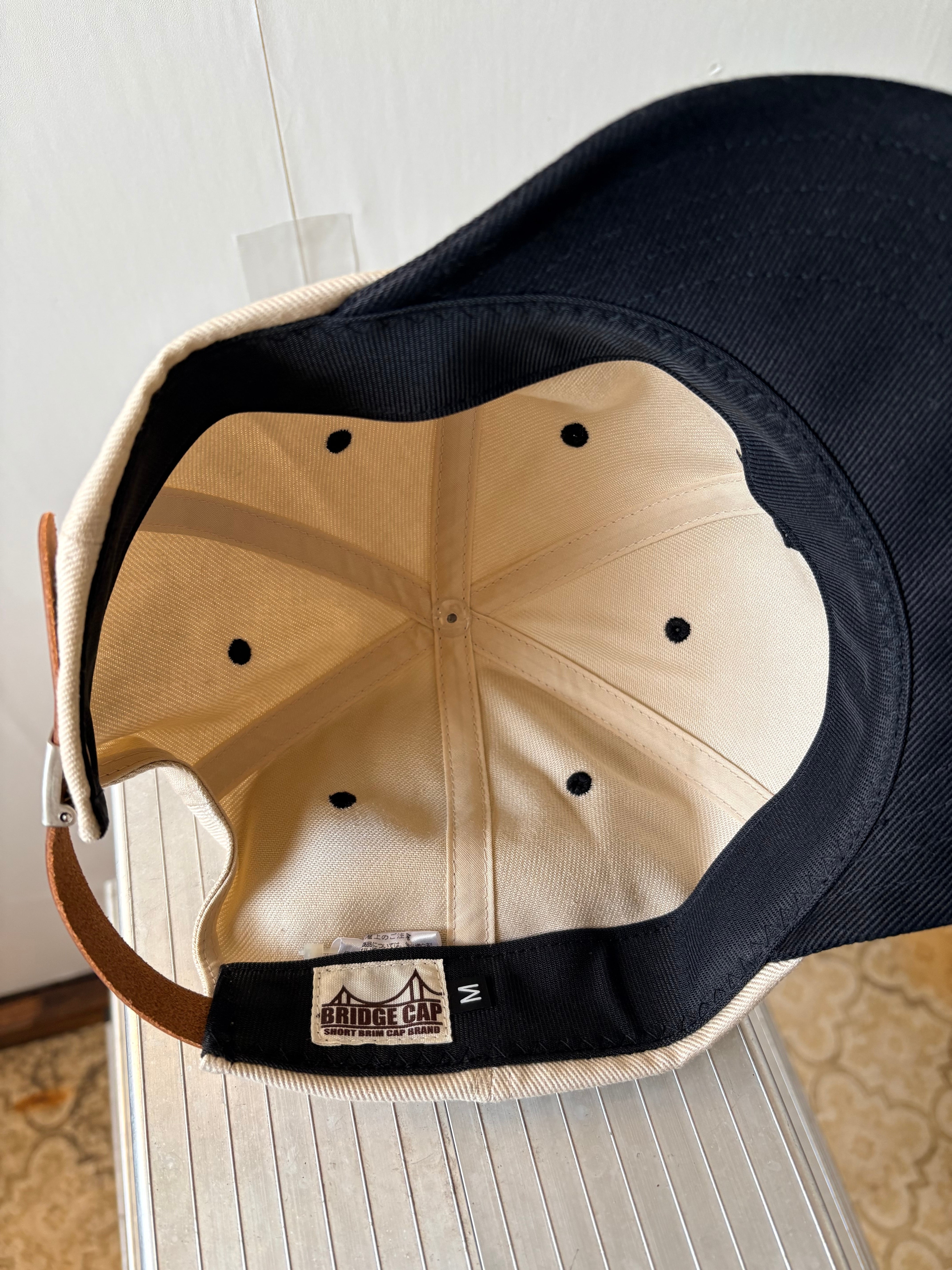 クラシックなベースボールキャップのデザインを落とし込んでいるが、BRIDGE CAPの特徴であるショートブリムと硬い芯を使わないソフトなデザインによって、スポーツ要素が少ないアメリカントラディショナルなデザインに。