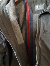裏地には、縦縞パターンが入ったブランケットでアメリカンブランドらしい雰囲気があり、袖裏地のキルティングライナーは保温性に優れ、防寒性を高めています。