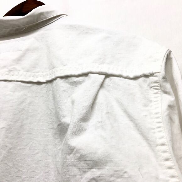 ホワイトのブロード生地とリップストップ生地のコンビが特徴となったスクエアーシャツです。